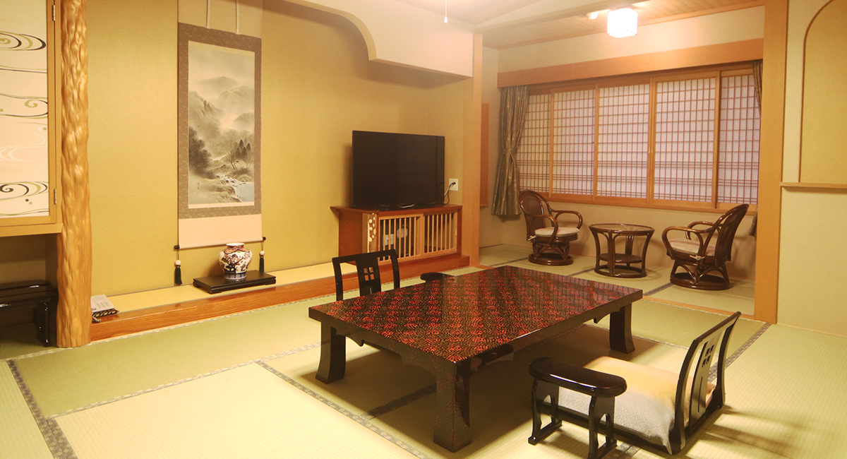- 和室10畳+洋室16平米 (ベッド2台) ※展望バス・トイレ付